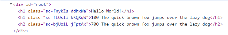 37export default AppIn this DOM image you can see styled components assign a unique class name to each element or each style.